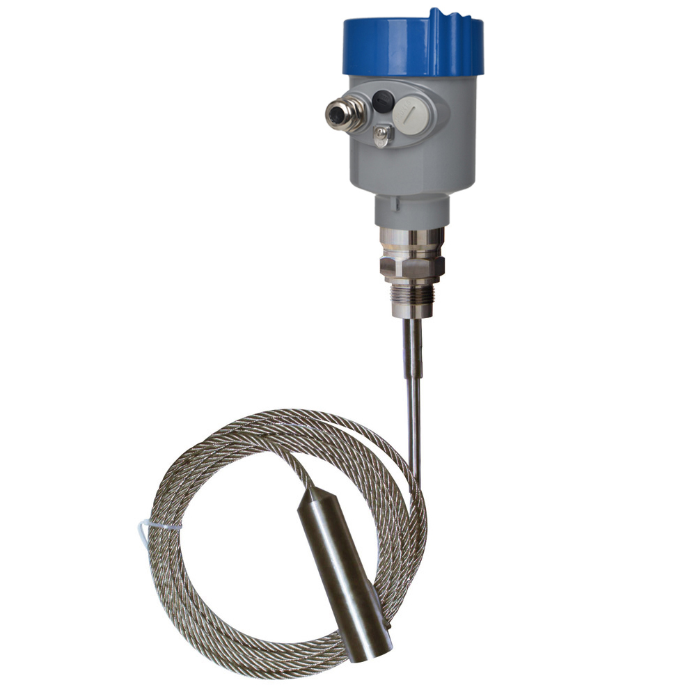 雷達(dá)液位計是基于時間行程原理的測量儀表,雷達(dá)波以光速運(yùn)行,運(yùn)行時間可以通過電子部件被轉(zhuǎn)換成物位信號。探頭發(fā)出高頻脈沖并沿纜繩傳播,當(dāng)脈沖遇到物料表面時反射回來被儀表內(nèi)的接收器接收,并將距離信號轉(zhuǎn)化為物位信號。